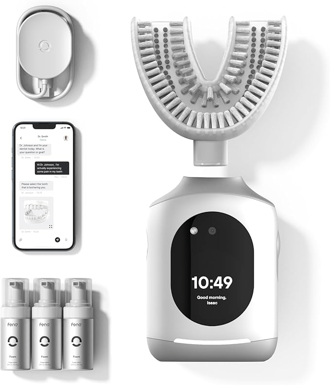 Battery life is solid, the wireless magnetic charging dock keeps things fuss-free, and the whole system is lightweight enough to throw in a bag for travel. Customer feedback often compares the end result to a post-dentist clean, which is high praise for such a quick routine. If you value speed, convenience and genuinely different tech, the Feno Smartbrush stands out as the boldest and most futuristic AI toothbrush on the market right now.