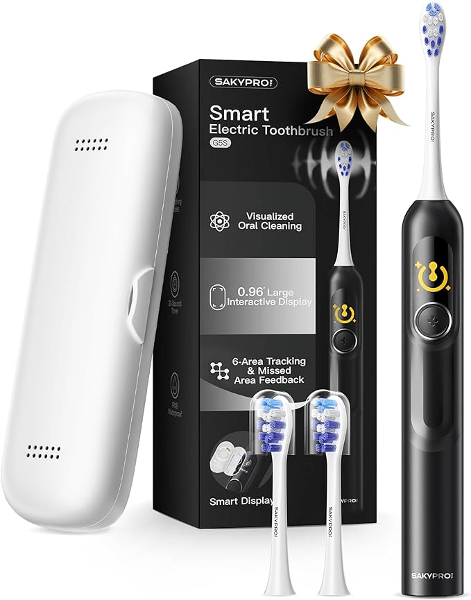 The SAKYPRORAL G5S leans hard into visual feedback, and that’s exactly what makes it stand out in the AI toothbrush space. The built-in smart display tracks six oral zones in real time, showing exactly where you’ve brushed — and, more importantly, where you’ve missed. It turns brushing into a clear, goal-driven routine rather than guesswork, and long-term users consistently report noticeably cleaner teeth as a result.