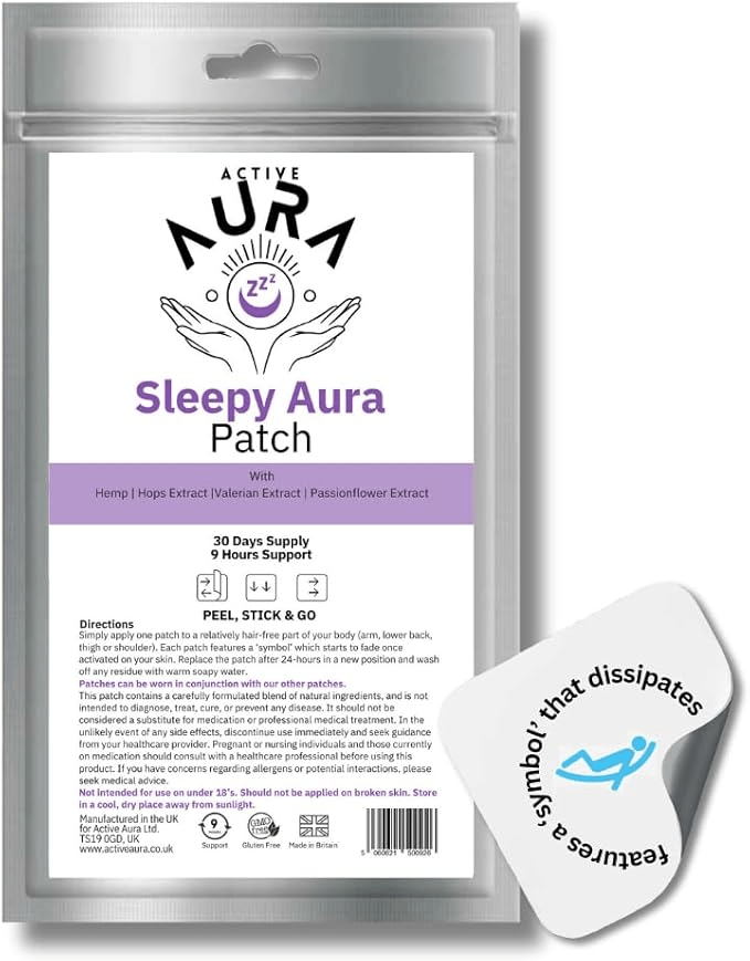 The Active Aura Sleep Patches provide a safe and natural way to improve sleep, using a gentle blend of hemp extract, valerian, passionflower, and hops. Designed to help calm the mind and body, they can make it easier to fall asleep, stay asleep, and wake feeling refreshed without any grogginess. Unlike pills or supplements, these patches use transdermal delivery, releasing ingredients gradually over nine hours as they’re activated by your body heat.